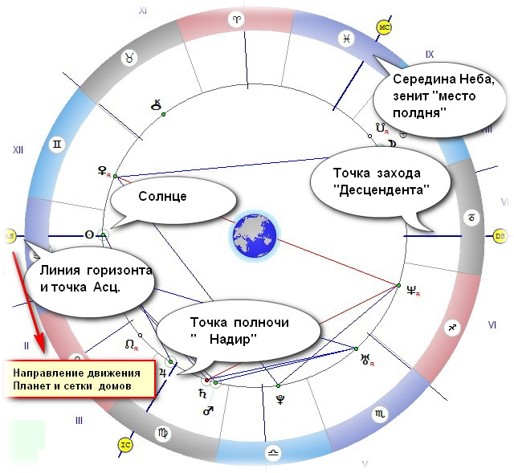 Субъективно, для человека дома гороскопа — это окошки во внешний мир, которые мы называем направлениями — Восток, Запад, Юг и Север, которые соответствуют углам гороскопа. И каждое окрашено определенным образом – характером Зодиакального знака в котором берет свое начало. Начало соответствует физическому телу человека, его индивидуальности. В реальном мире – это сектор в восточном направлении, на линии горизонта.